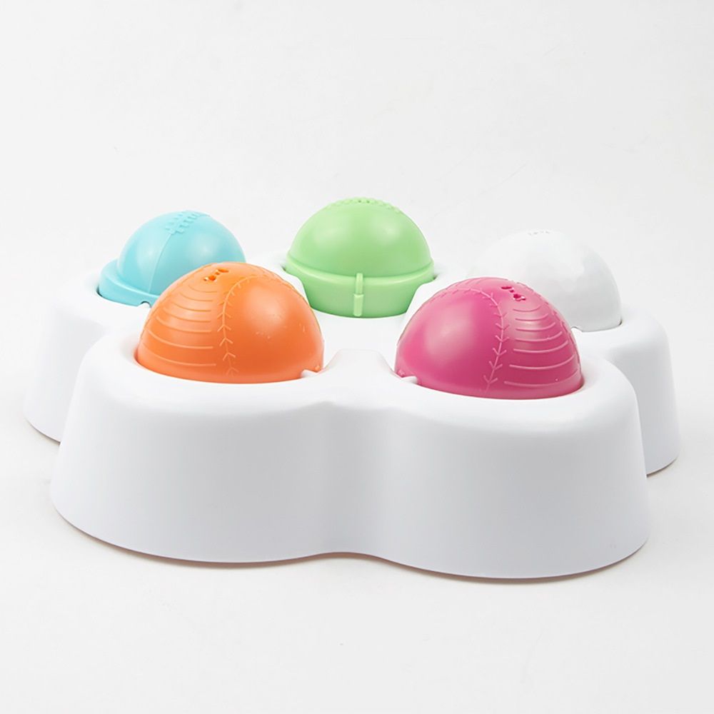 3.Dog food toy has 5 treat compartments balls, will keep your dog busy while teaching them problem-solving skills. Dog feeder makes the puppy need to work for food and get rid of laziness.