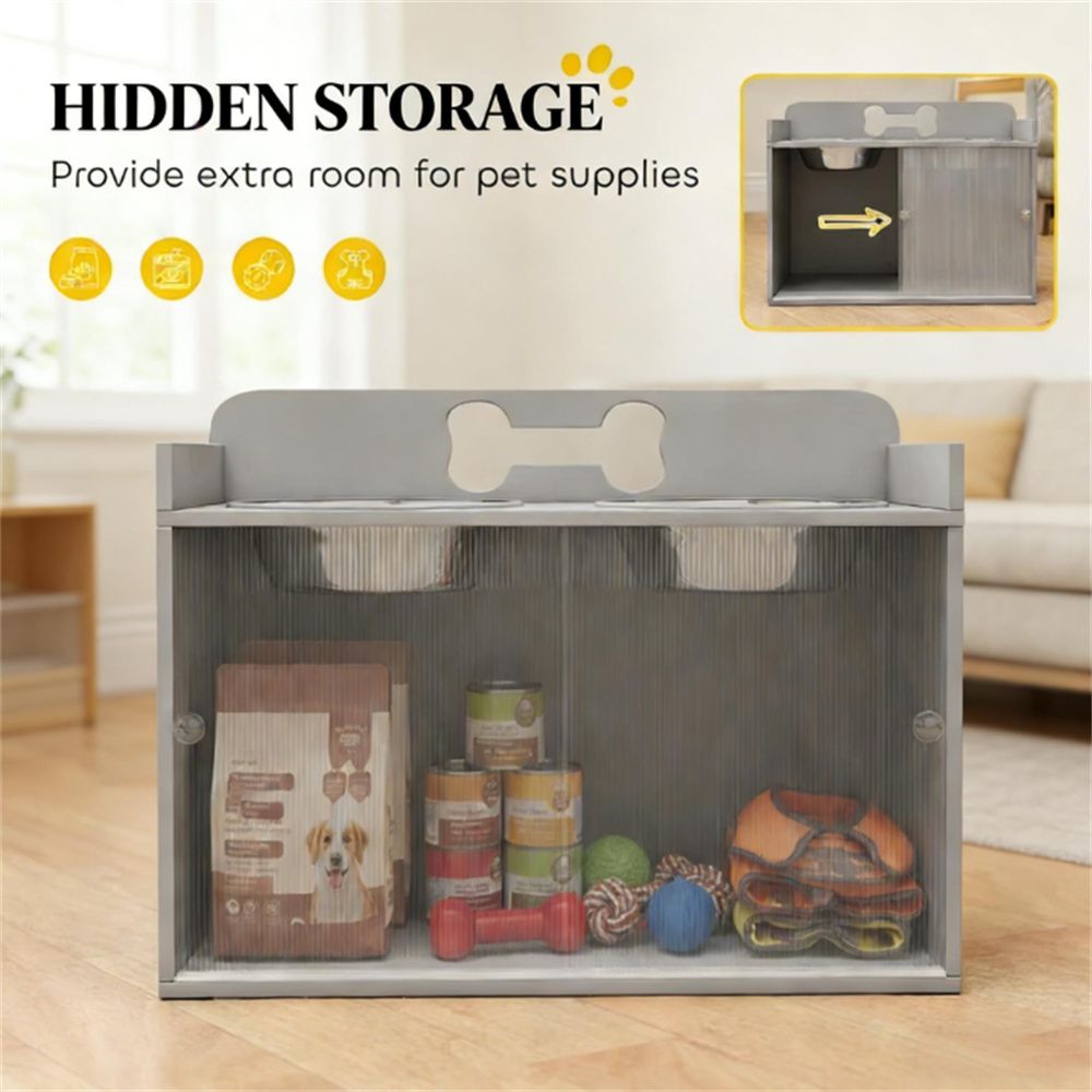 Elevated dog bowl with storage space, gray Elevated dog bowl with storage space, gray Elevated dog bowl with storage space, gray