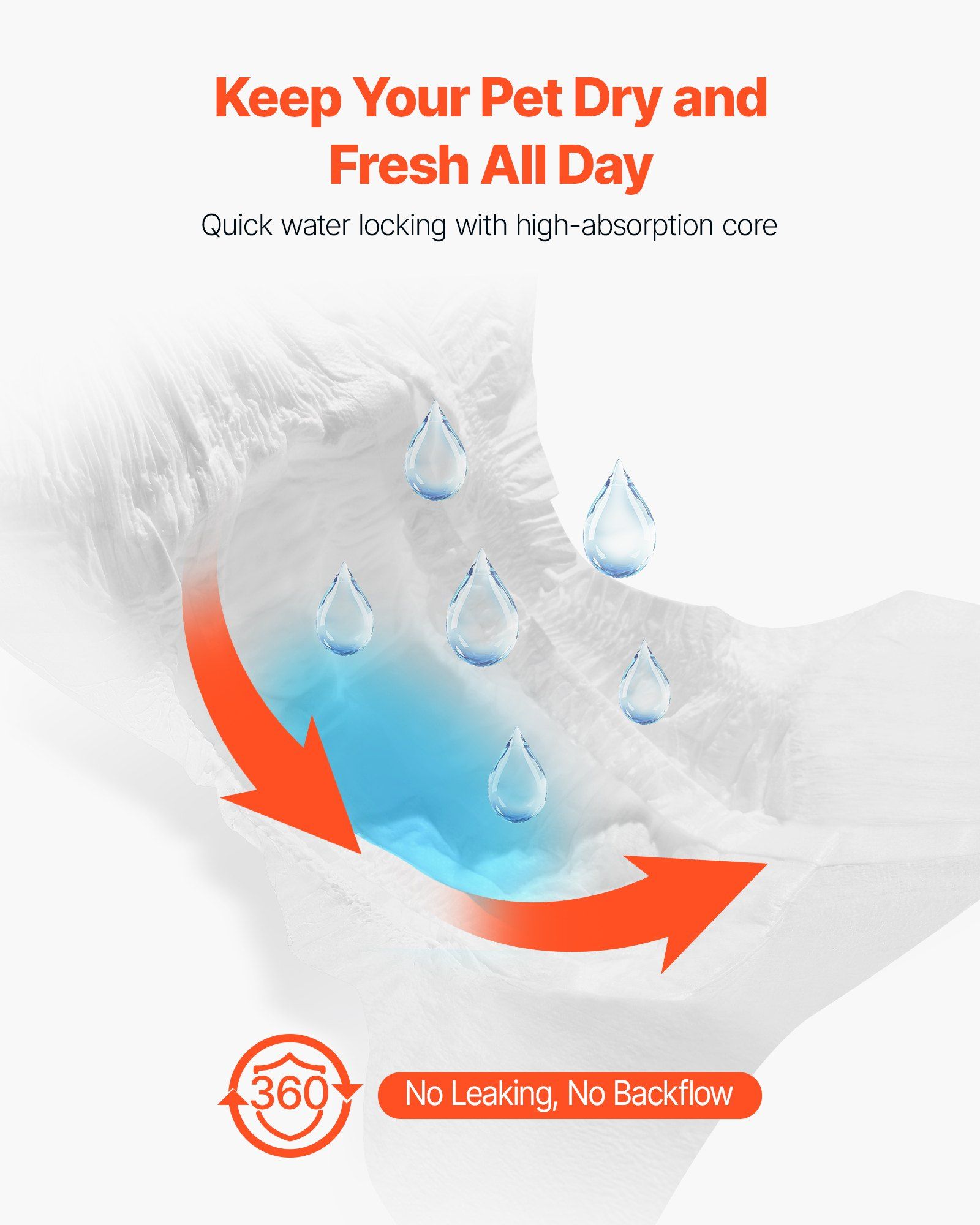 1.Super Absorbent: VEVOR M-sized disposable female dog diapers feature a super absorbent core that quickly locks in liquid, offering 360° leak-proof protection with no backflow. Perfect for dogs in heat cycles, pet training, incontinence, post-surgery recovery, and travel. Suitable Waist Size: 15-23 inches / 38.1 - 58.42 cm